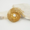 Memberi panggung pada rumah keong yang banyak ditemukan di pesisir pantai Indonesia. Sentuhan desain spiral yang rumit menambah nilai anggun pada bros. Tersedia dalam dua versi warna, lapis emas dan lapis perak.