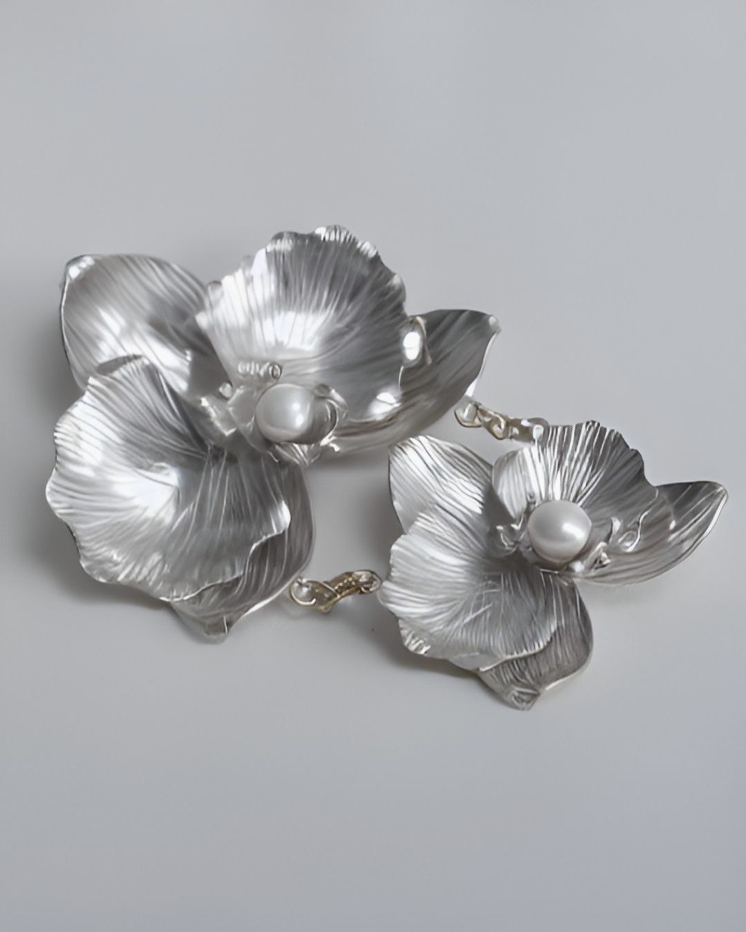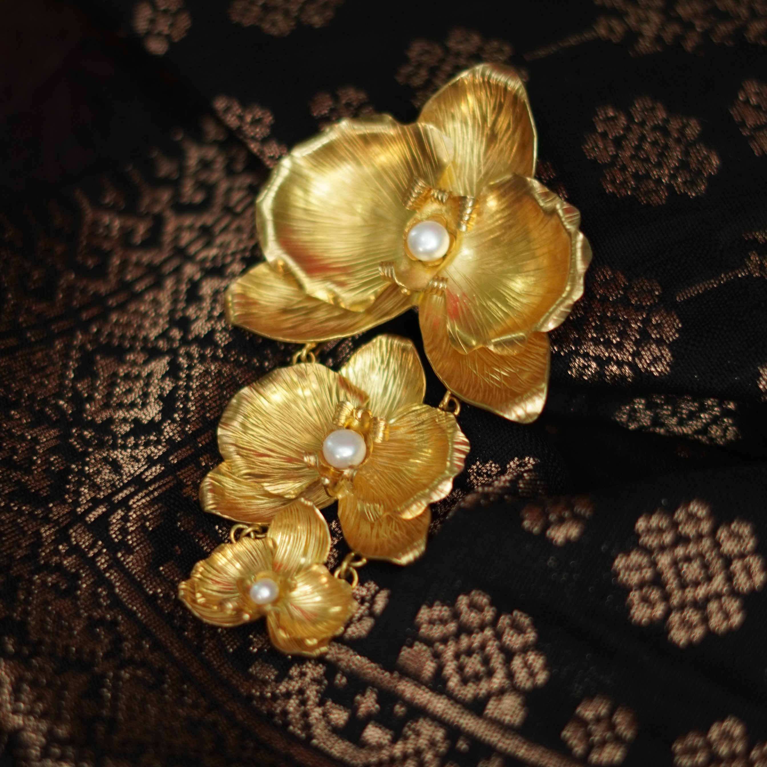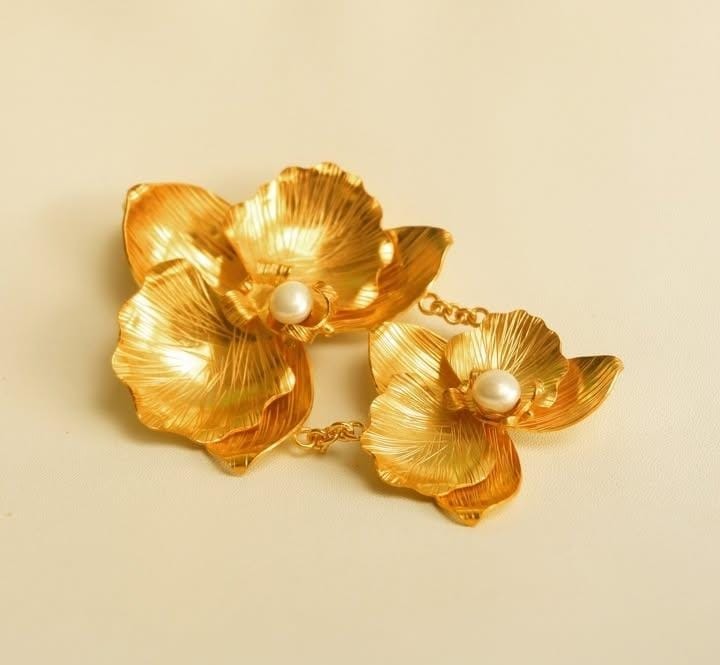Struktur kelopaknya menggambarkan kelembutan sekaligus kekuatan dari dalam. Bunga dengan berbagai simbolik keindahan ini hadir dalam bentuk bros dua dan tiga susun yang menambah keindahannya.