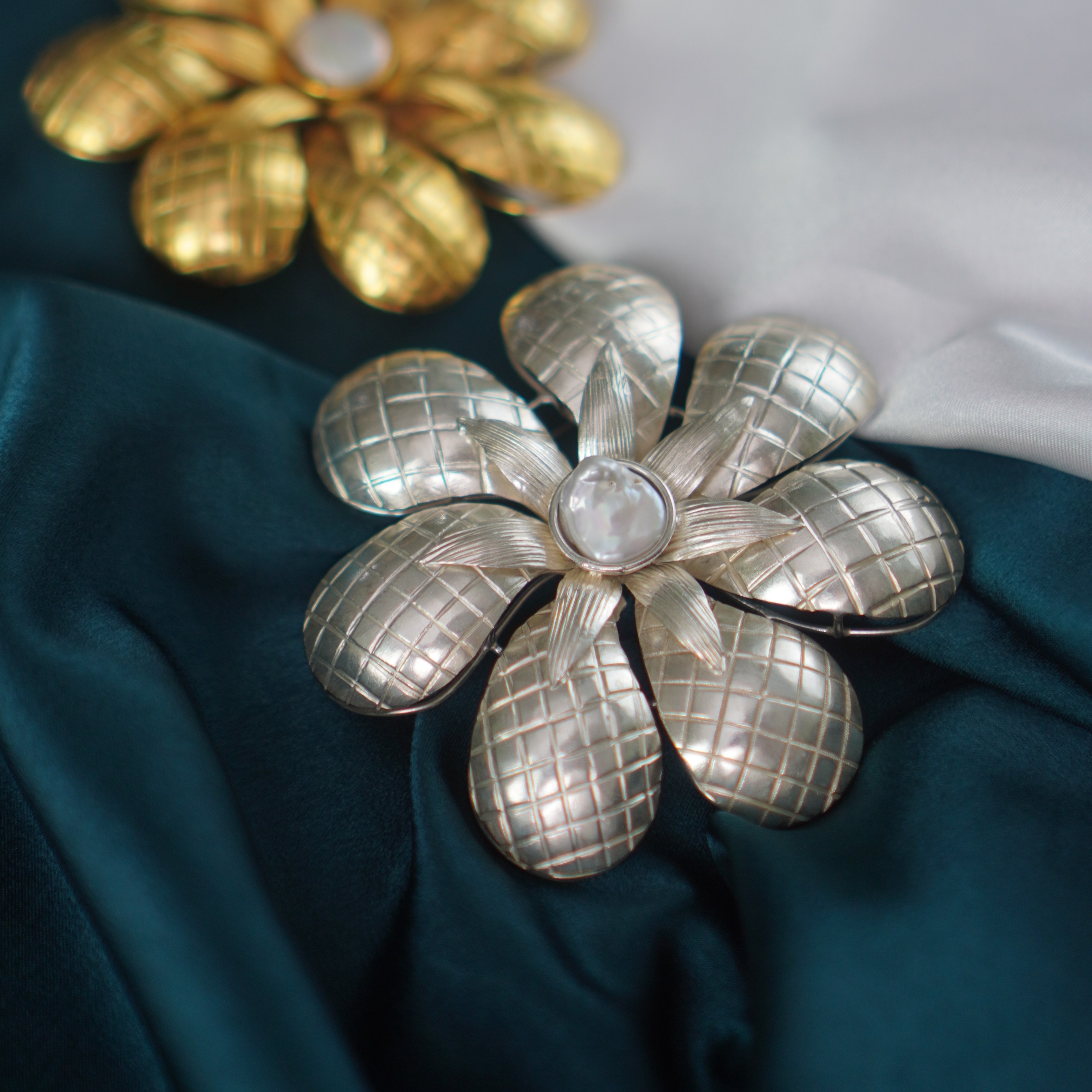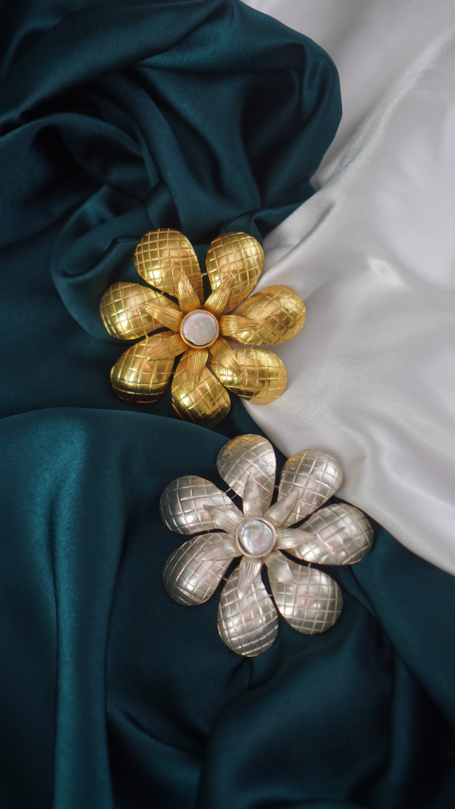 Material: Tembaga, kuningan, lapis emas, mutiara air tawar.