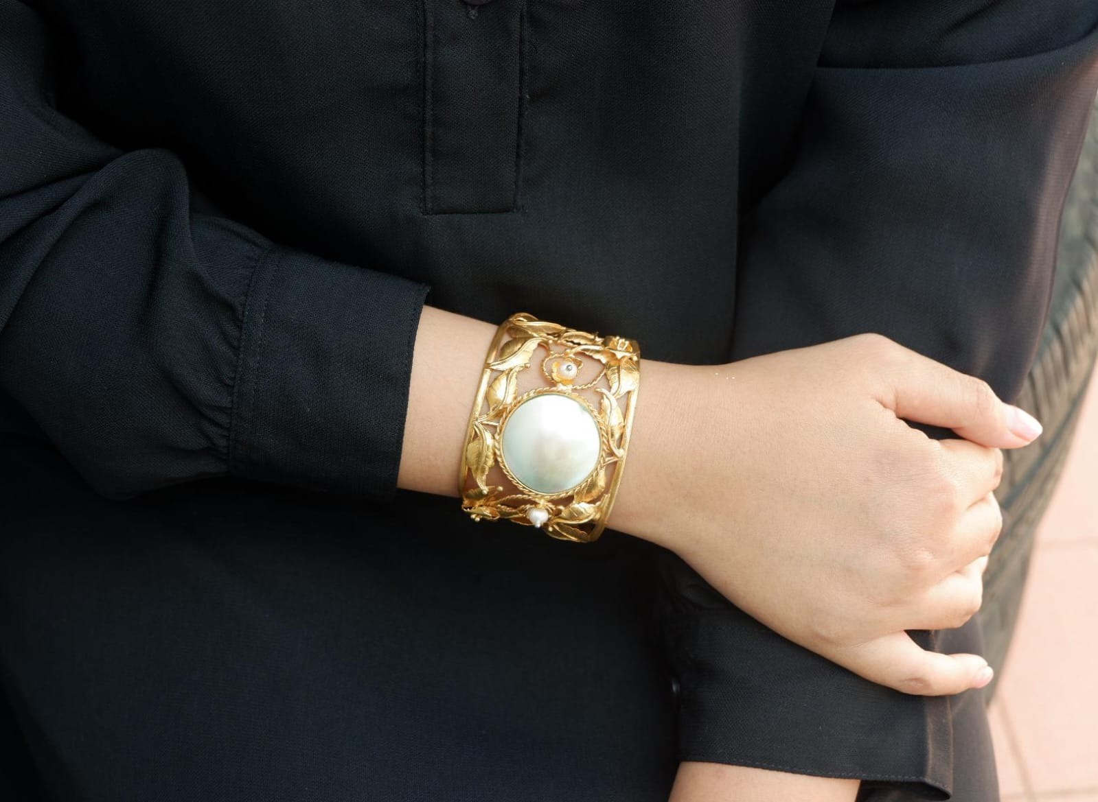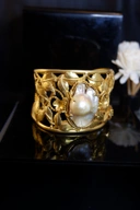 Istilah maharani digunakan untuk menggambarkan kemegahan dan kewibawaan. Dalam dunia perhiasan, konsep ini hadir lewat detail rumit, ornamen floral, nuansa emas yang membawa kita lebih dekat dengan pesona kerajaan. Hadir dalam edisi gelang yang memesona. (Warna batu dan ukuran mutiara barok dapat berbeda dengan yang ada di foto)