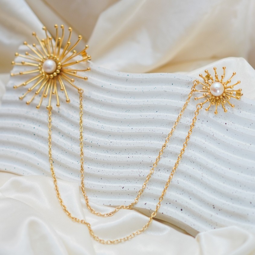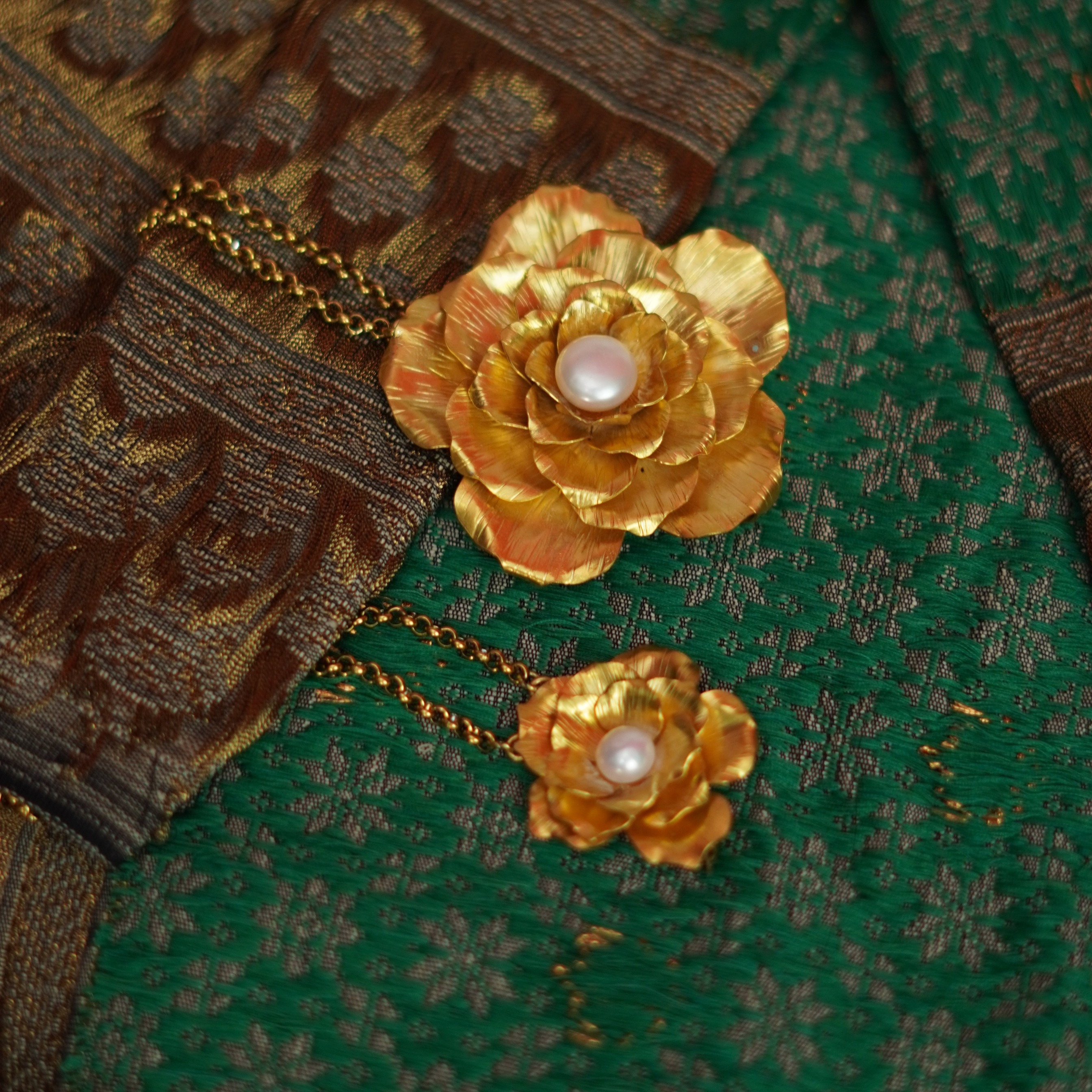 Material: Tembaga, kuningan, lapis emas, mutiara air tawar.