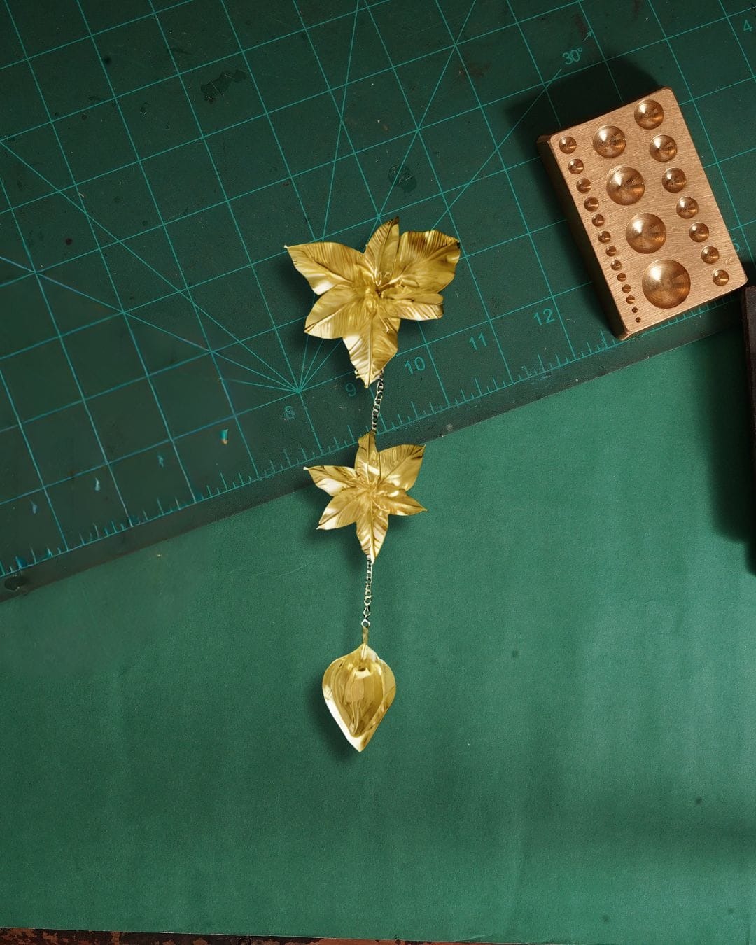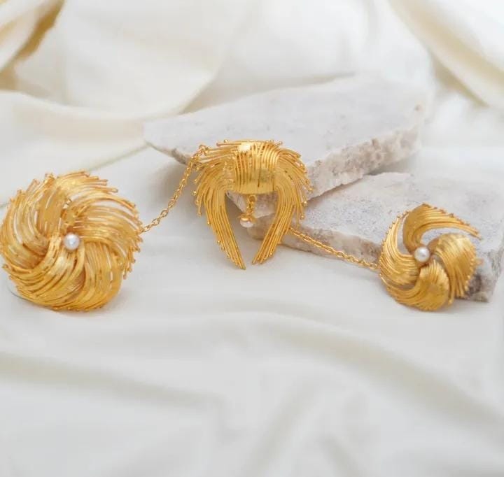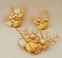 Material: Tembaga, kuningan, lapis emas, mutiara air tawar.