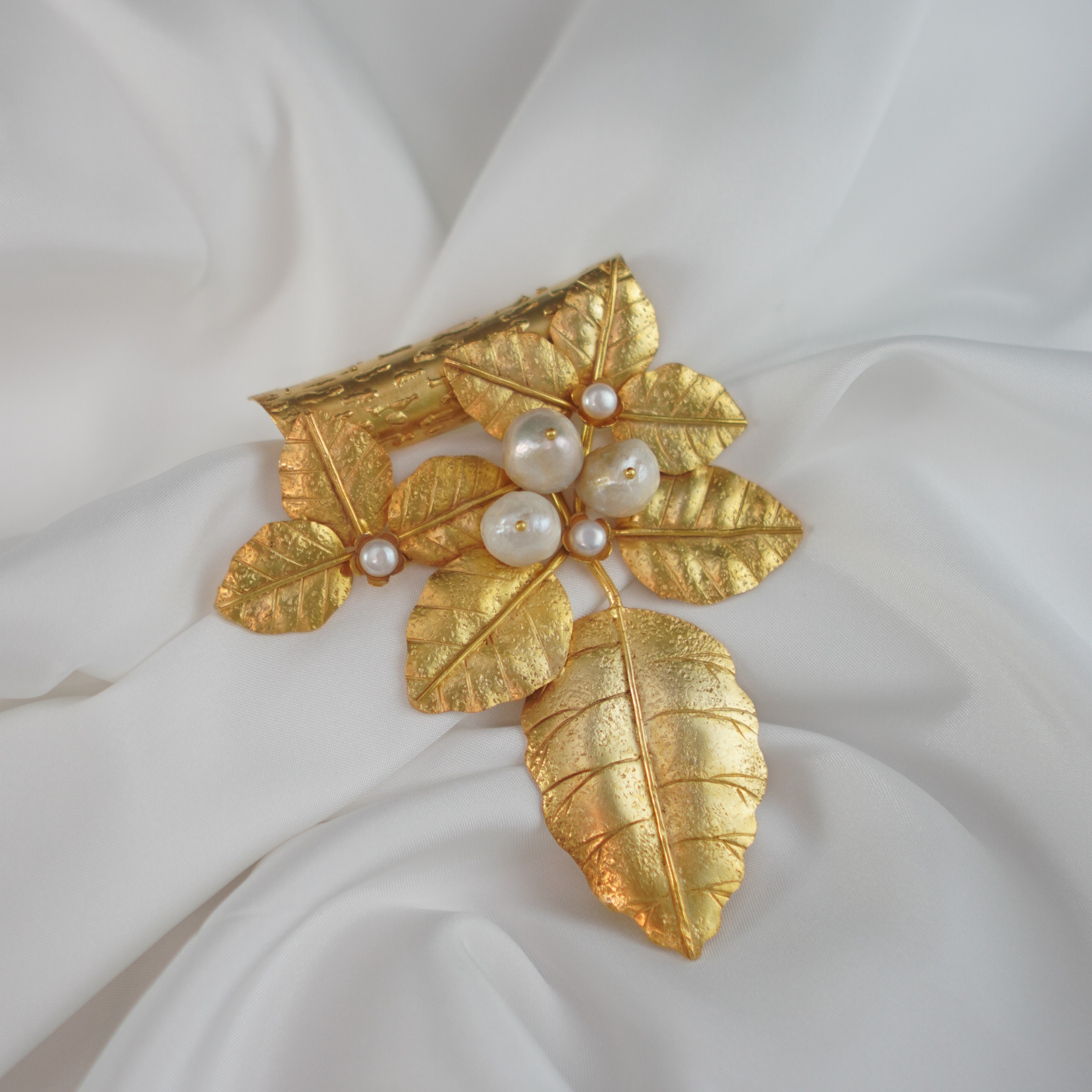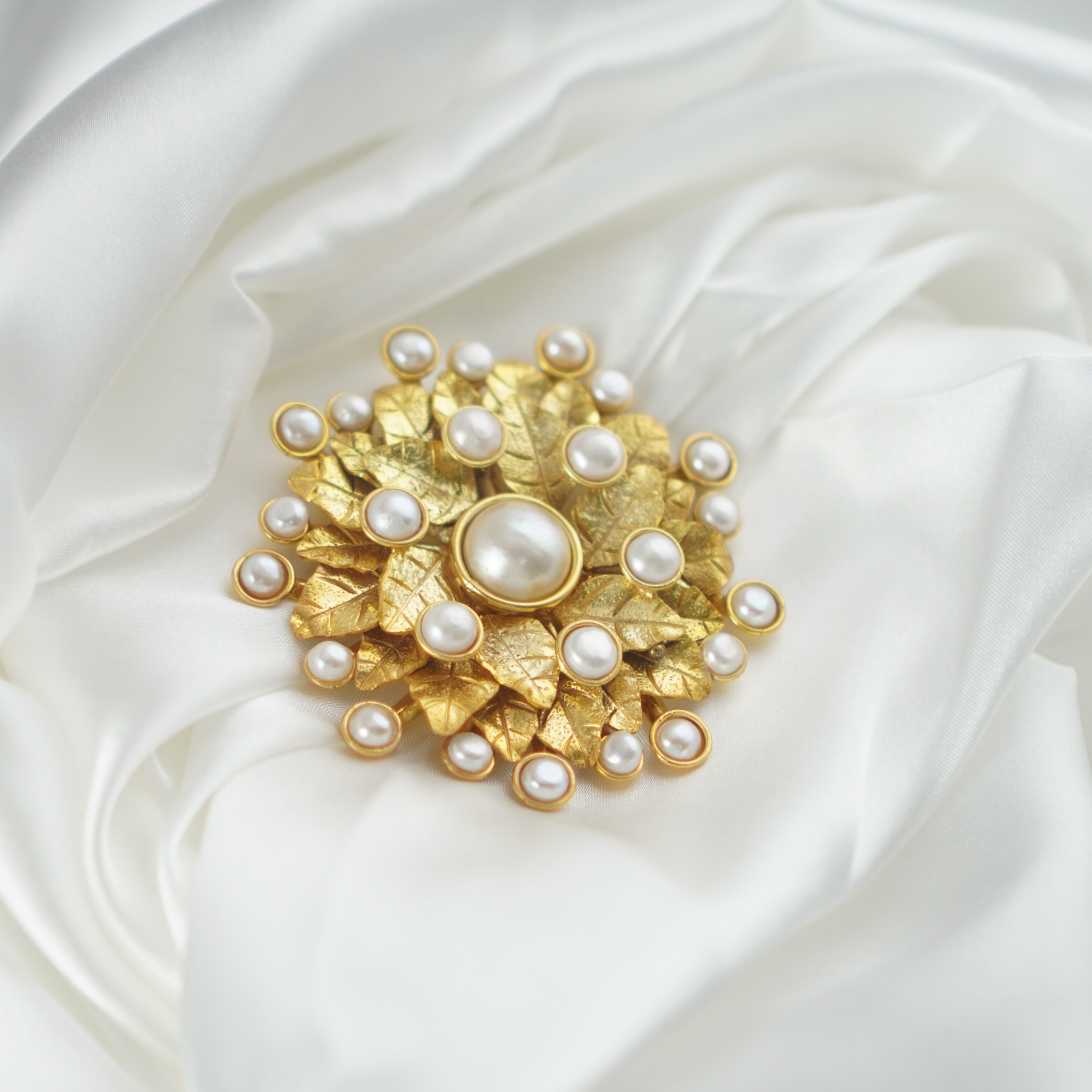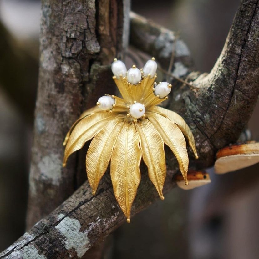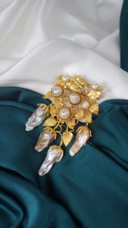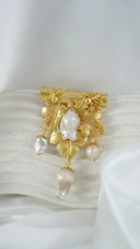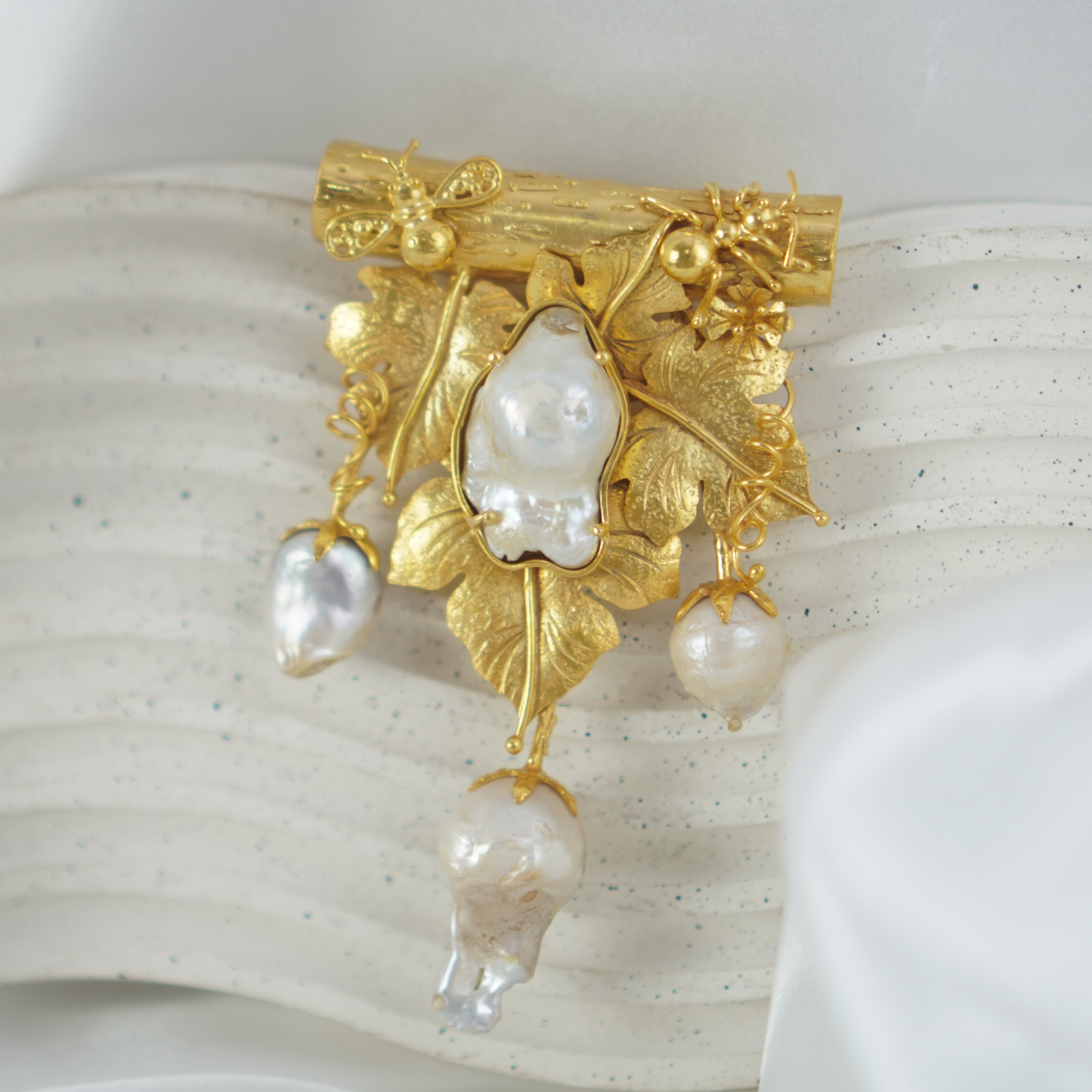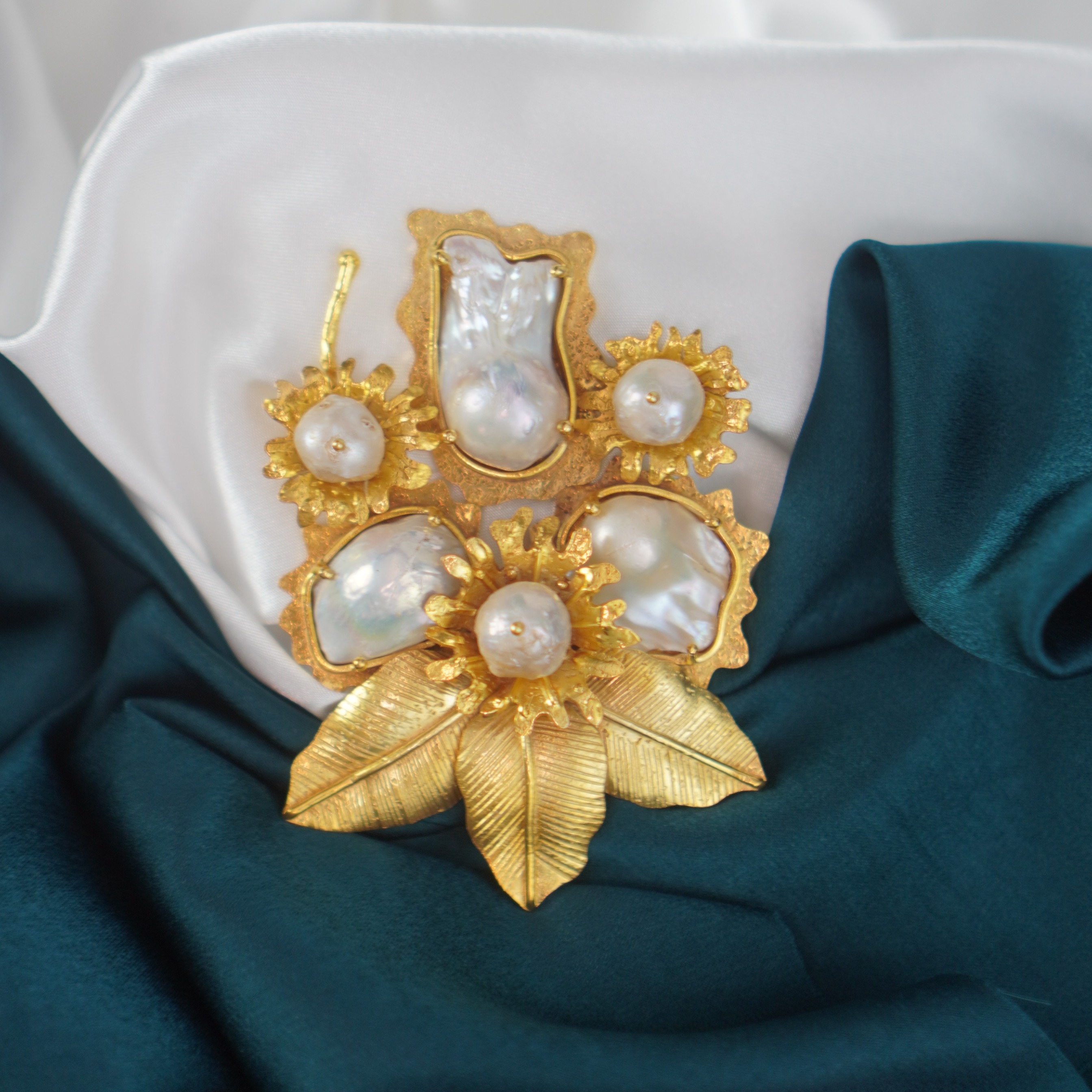 Material: Tembaga, kuningan, lapis emas, mutiara air tawar.