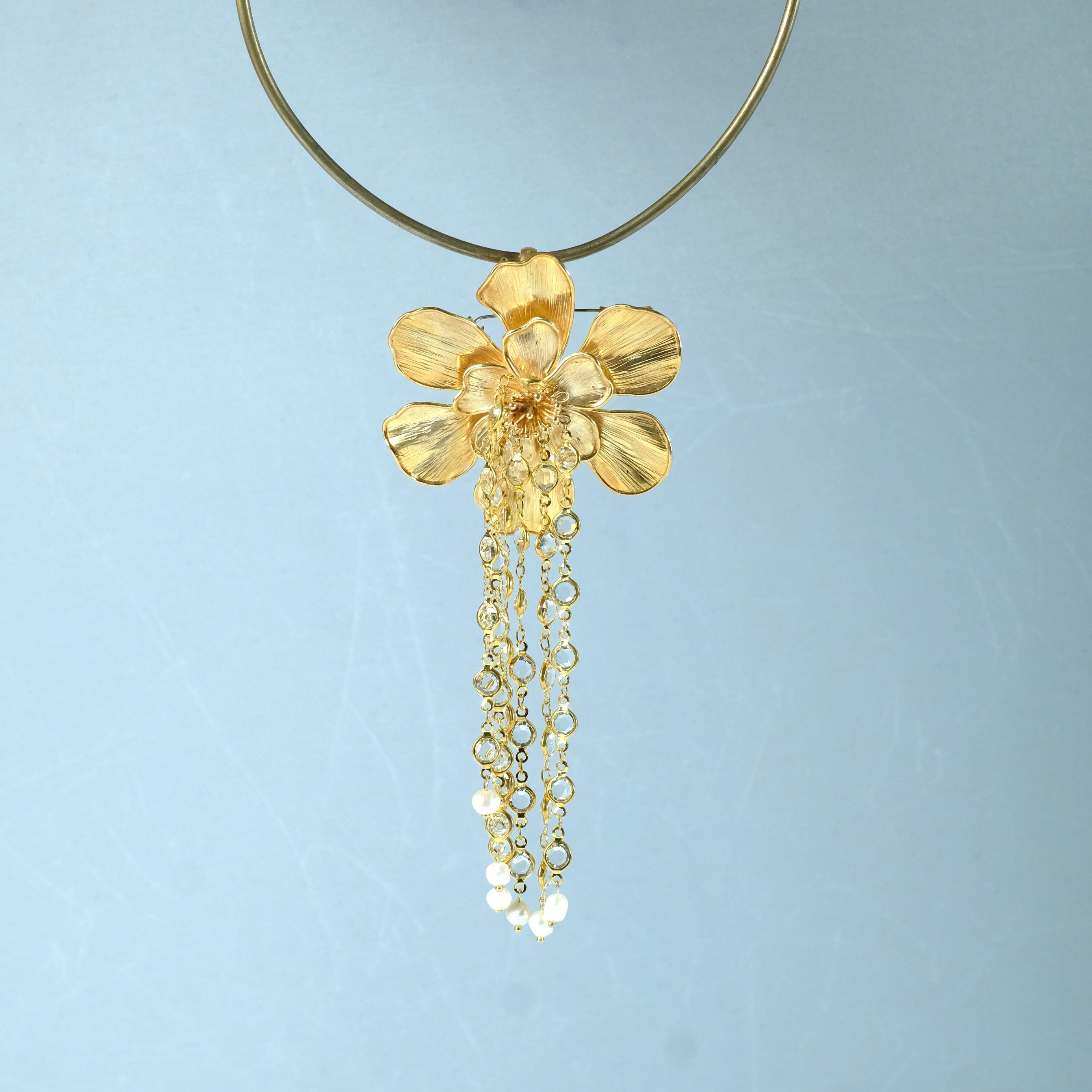 Material: Tembaga, kuningan, lapis perak, lapis emas, mutiara air tawar, permata zircon.