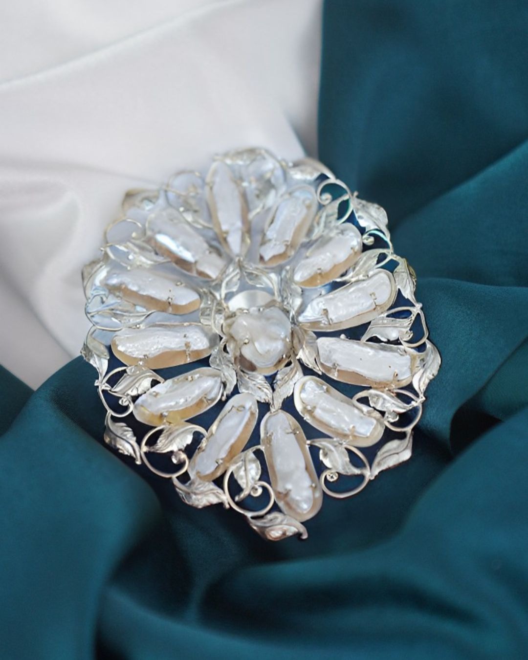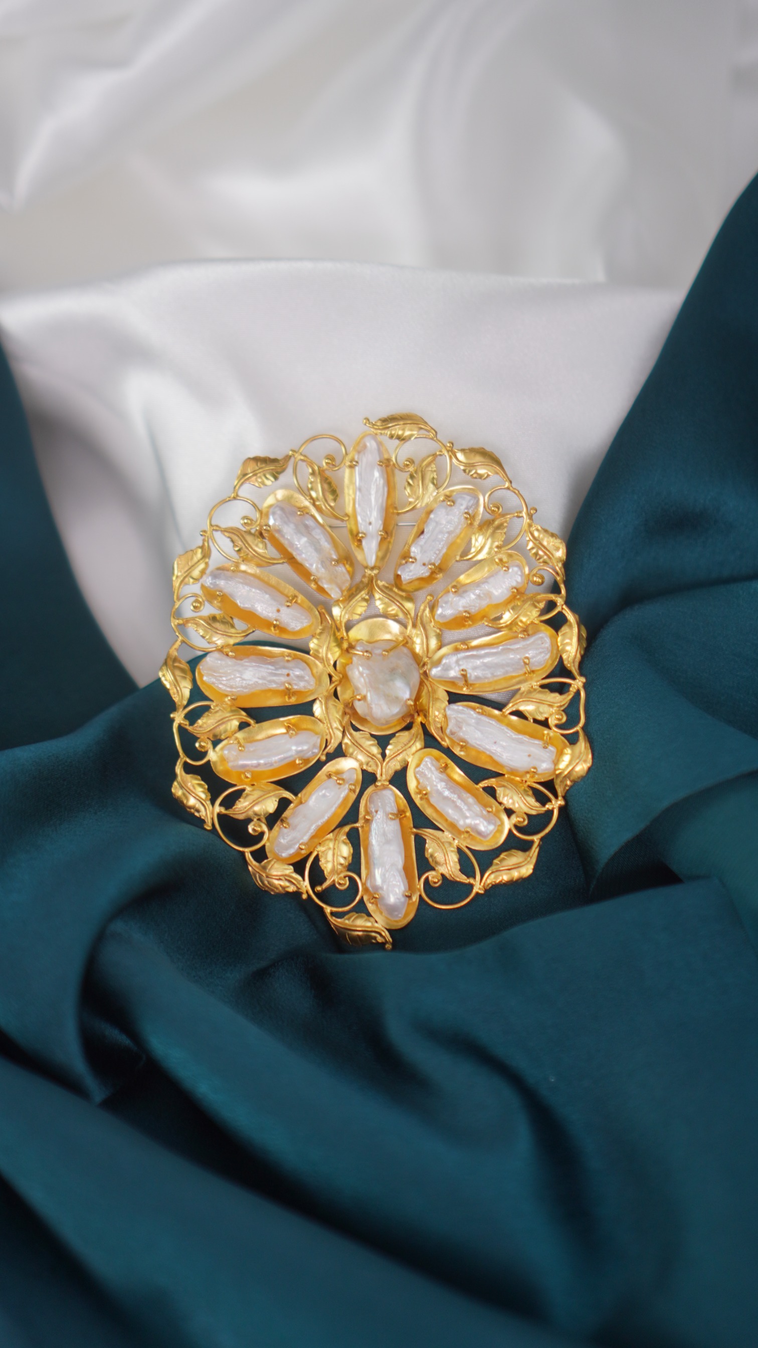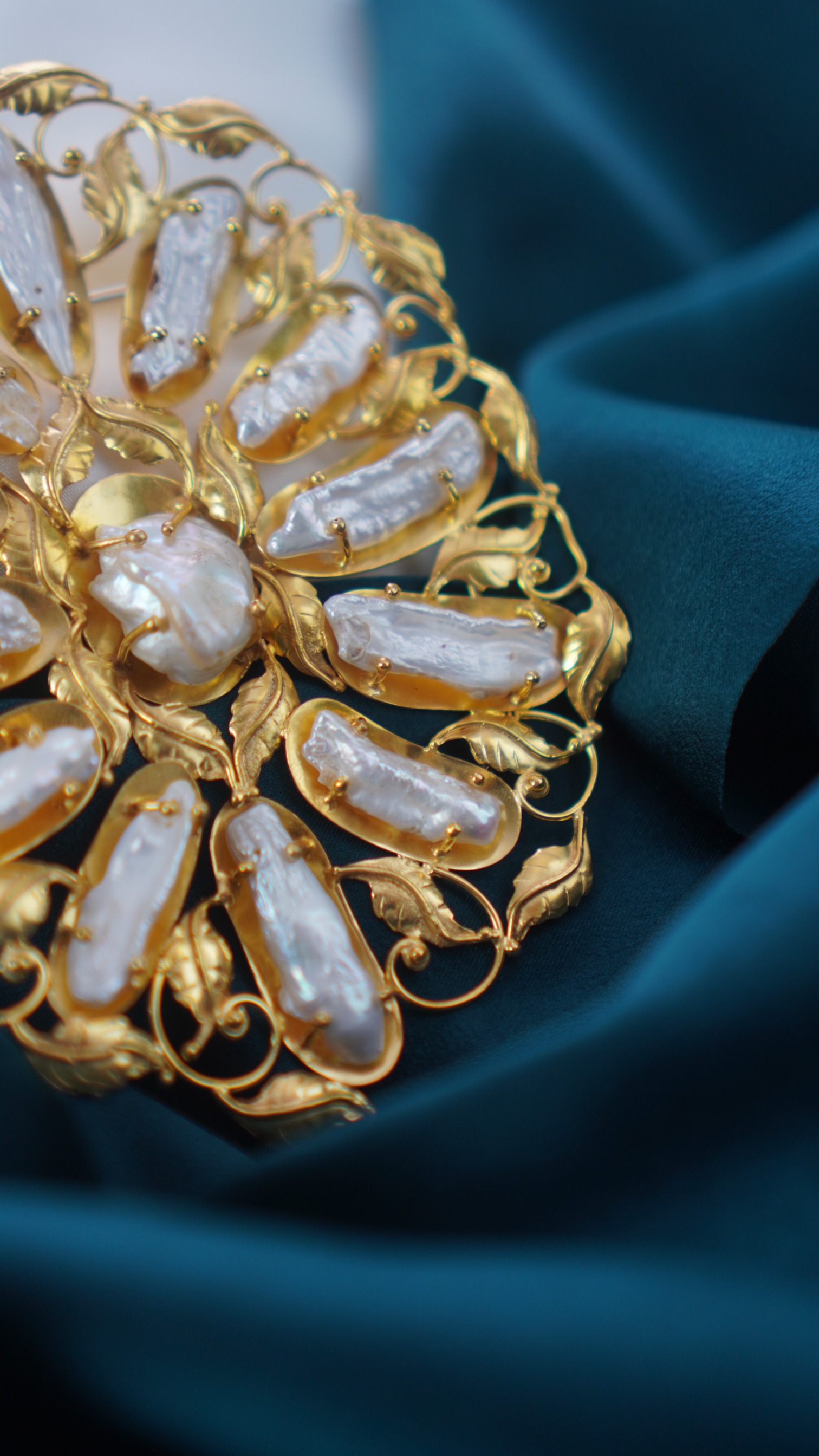 Material: Tembaga, kuningan, lapis perak, lapis emas, mutiara keshi air tawar.