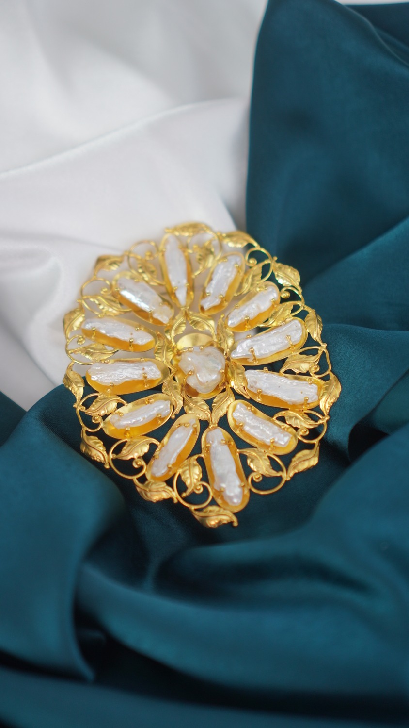 Material: Tembaga, kuningan, lapis perak, lapis emas, mutiara keshi air tawar.