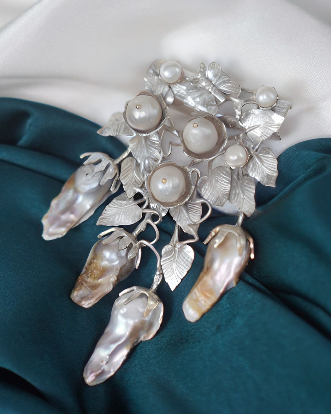 Material: Tembaga, kuningan, lapis emas, mutiara air tawar.