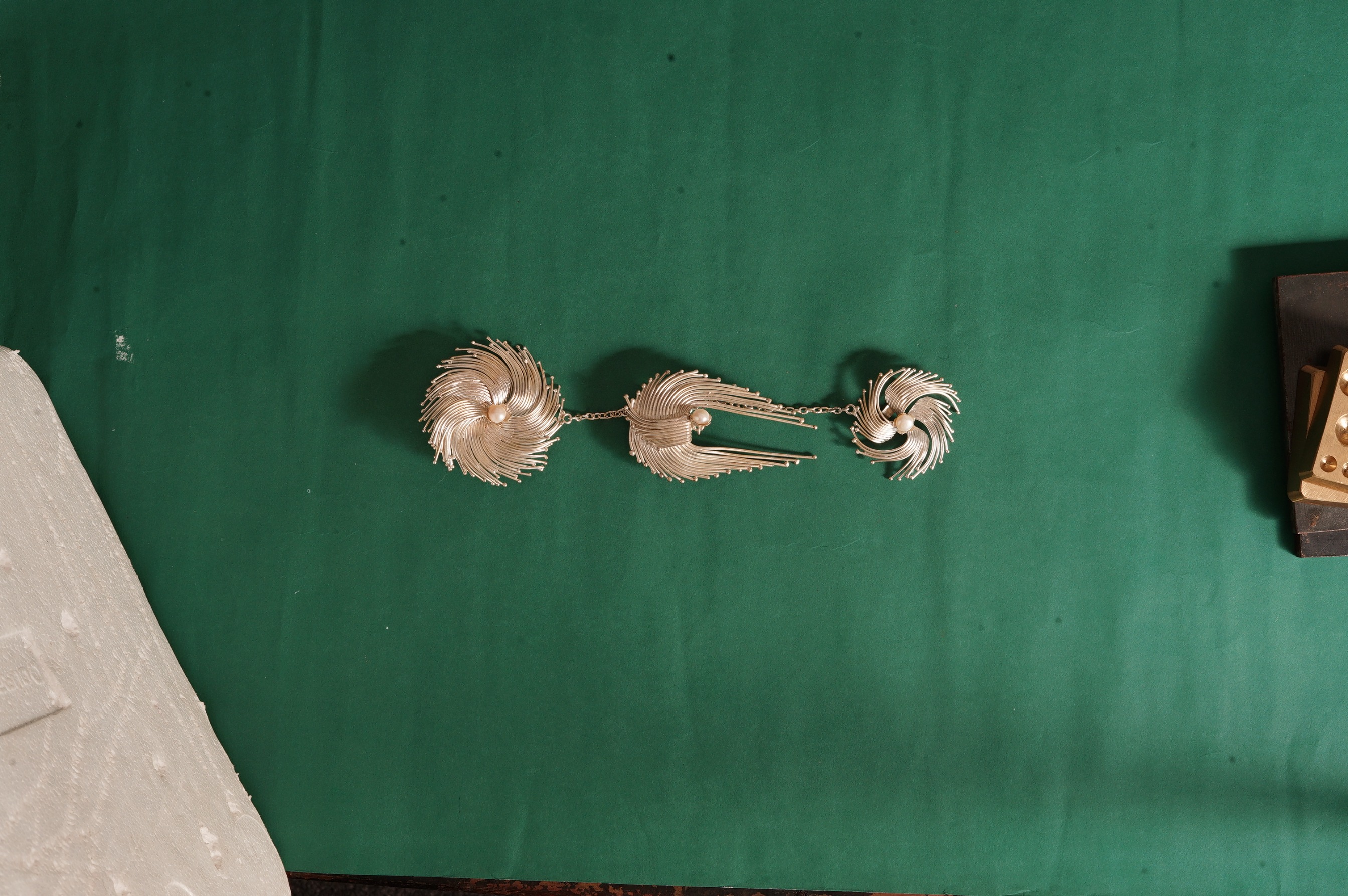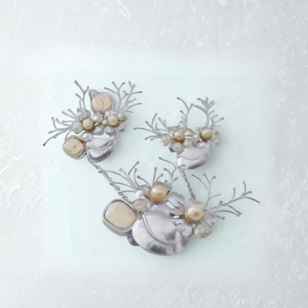 Material: Tembaga, kuningan, lapis perak, mutiara air tawar.