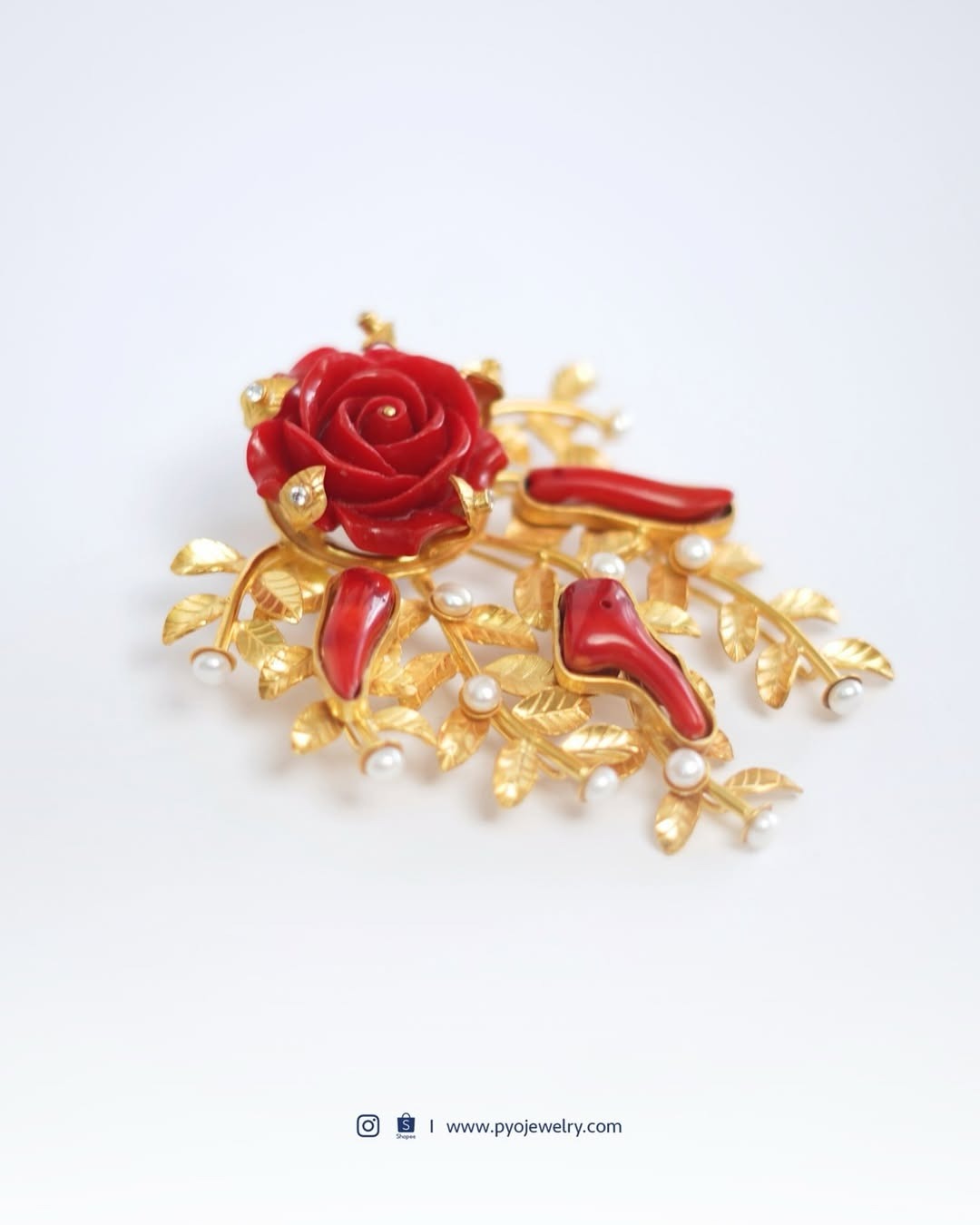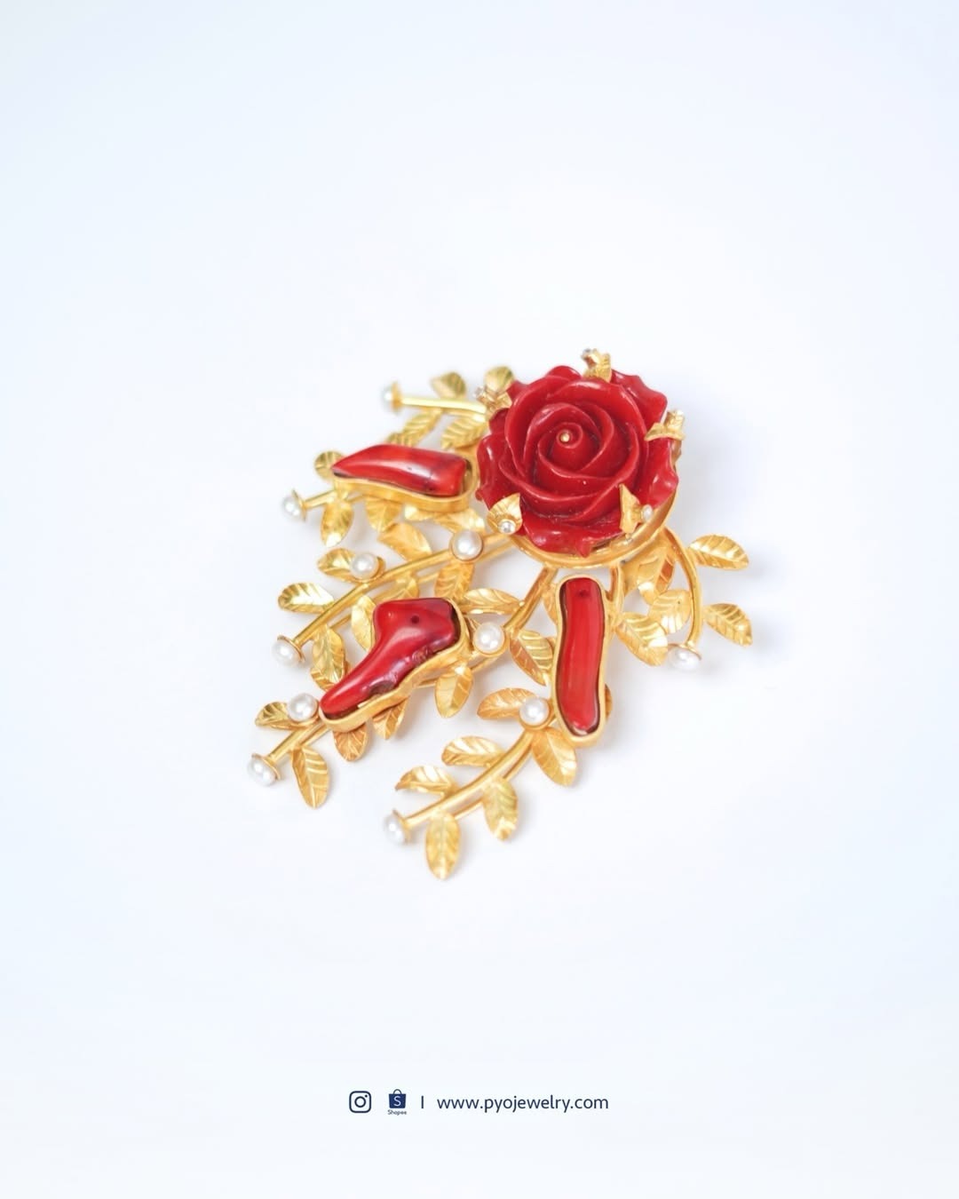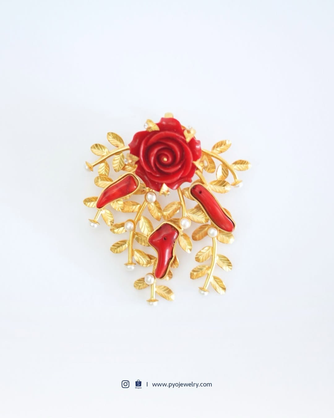 Material : Tembaga, kuningan, lapis perak, lapis emas, mutiara air tawar, coral, coral sintesis