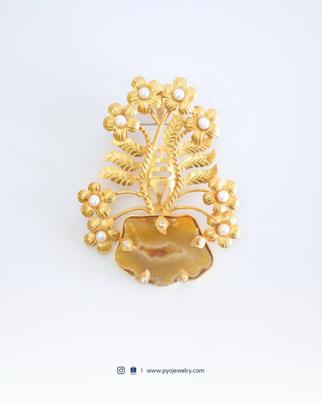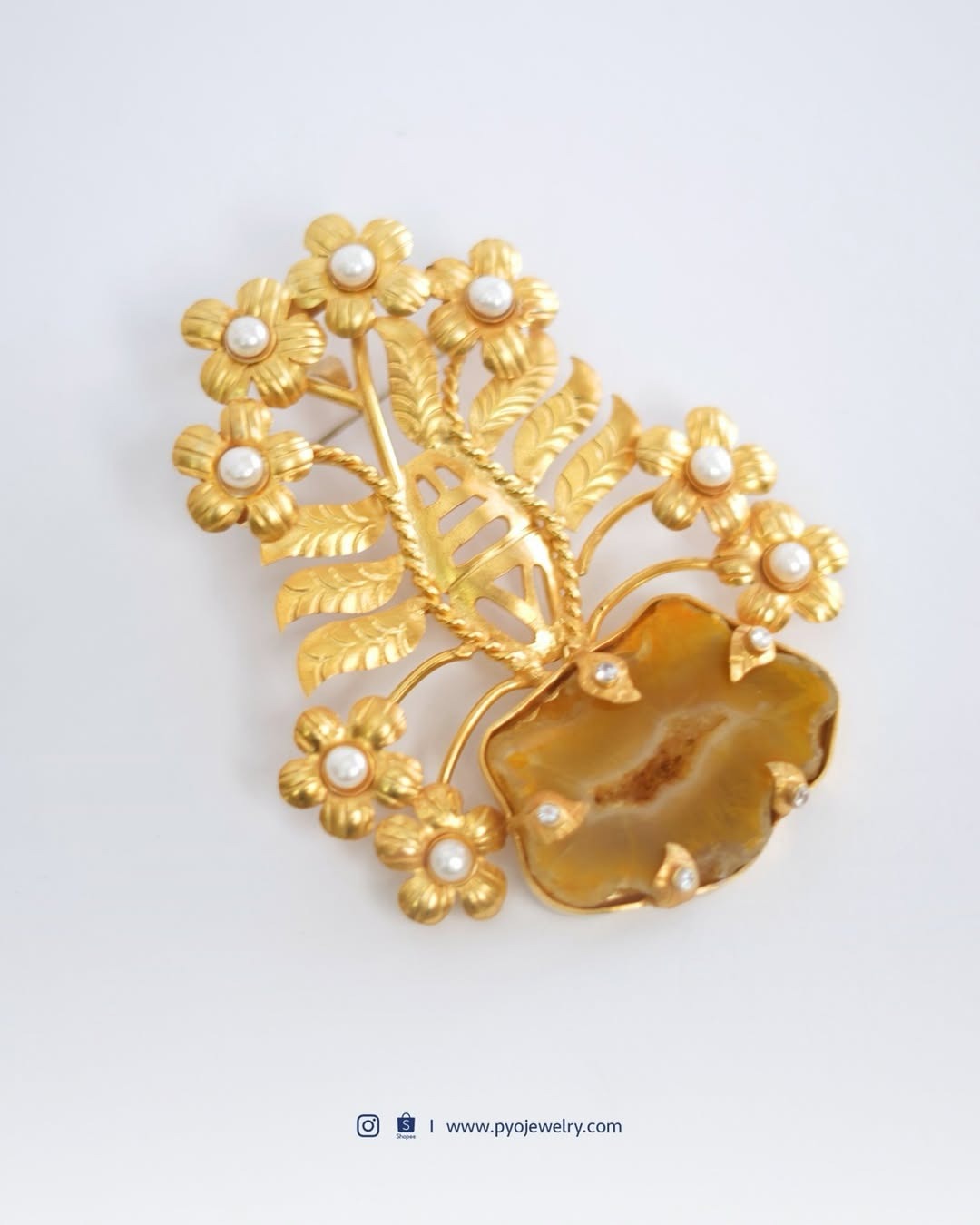 Material: Tembaga, kuningan, lapis perak, lapis emas, batu druzy, mutiara air tawar