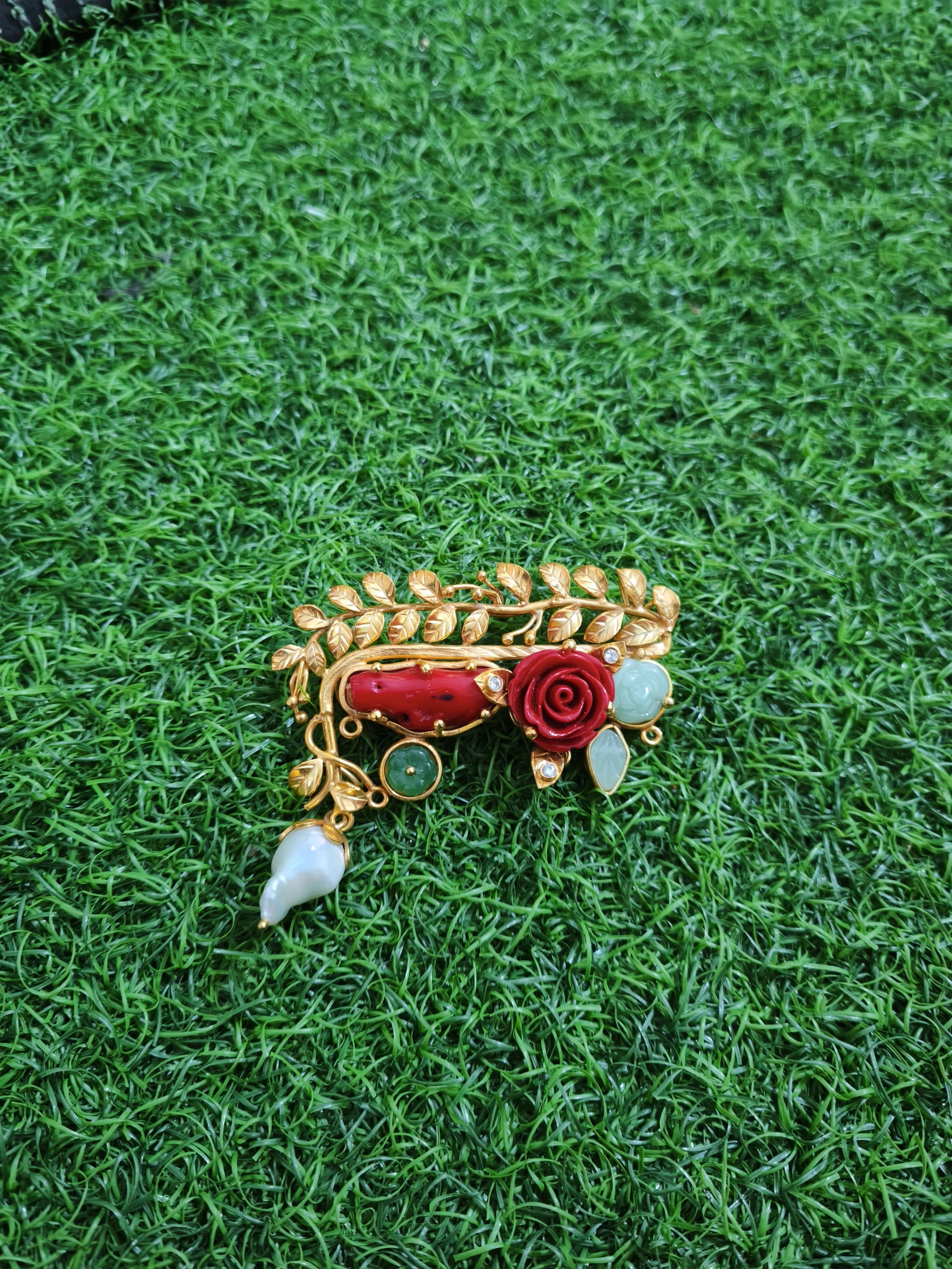 Material : Tembaga, kuningan, lapis perak, lapis emas, mutiara air tawar, coral, coral sintesis