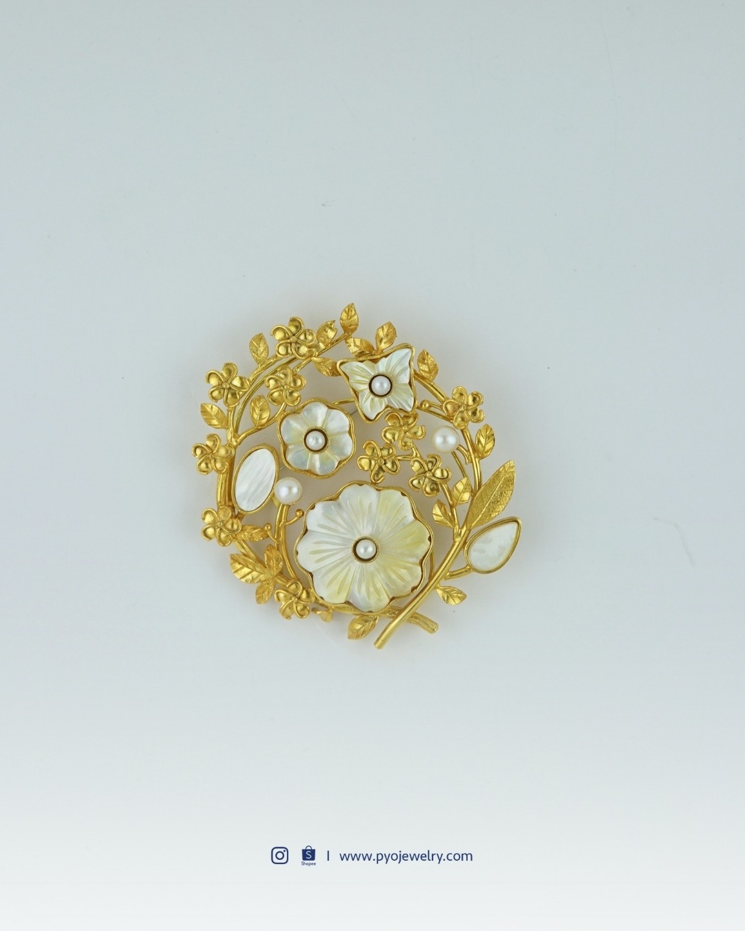 Bunga yang dibentuk dari kulit kerang dengan bagian sekitarnya membentuk rangkaian dedaunan yang membulat